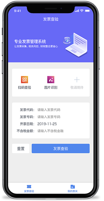 扫描仪 、扫码枪 、手工输入三种方式查验真伪,发票全票面比对, 扫描识别效率高 。记录查验历史, 防止财务重复报销。